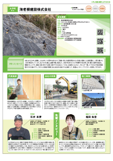| 事業内容 | 総合建設業 土木工事・法面工事・コンクリート工事・管工事等の公共工事が主な事業です。 |